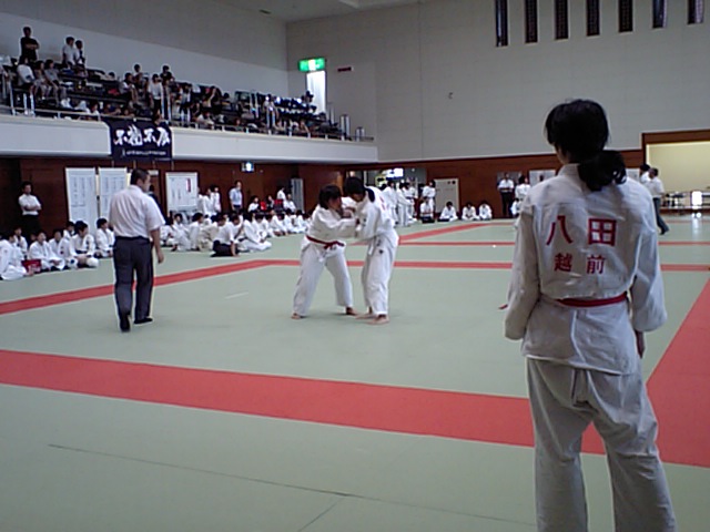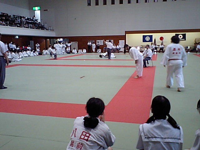 女子柔道部は、県立武道館で団体戦に出場しています。 一回戦は丸岡南中と対戦しました。先方は、有効を取りましたが、ポイント負けになりました。惜しかったです。中堅、大将は、それぞれ投げ技、寝技で一本勝ちしました! 次は優勝候補の福井中との対戦です。