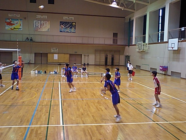 男子バレー部は、第一セットをとり、第二セットも7対5とリードしています。