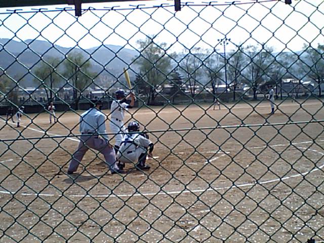 野球部は、中山球場で織田中と対戦しています。4回を終了し、2対0でリードしています。